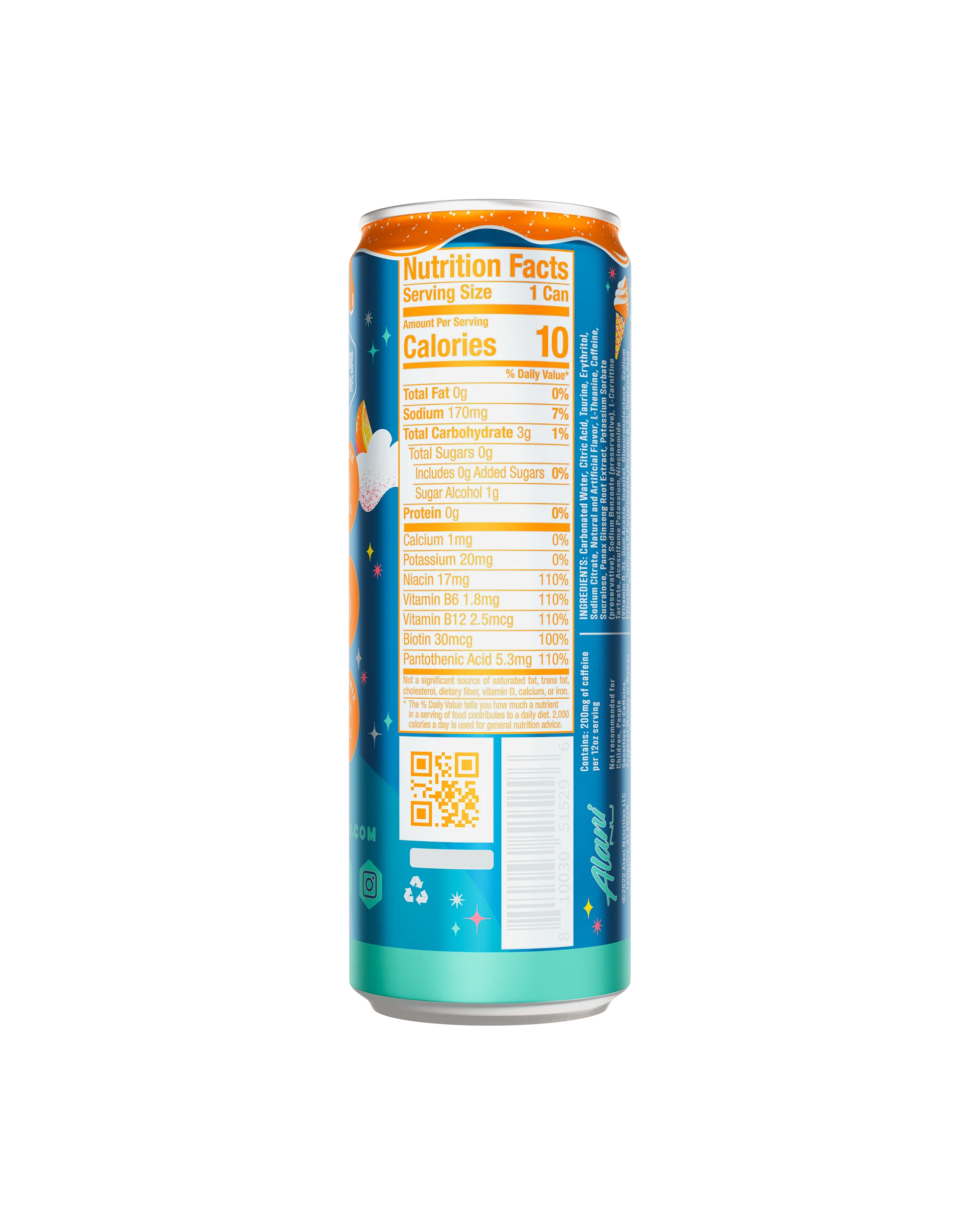 | Ingredients: Carbonated Water, Malic Acid, Taurine, Erythritol, Sodium Citrate, Natural Flavors, Citric Acid, L-Theanine, Caffeine, Sucralose, Acesulfame Potassium, Panax Ginseng Root Extract, Potassium Sorbate (preservative), Sodium Benzoate (preservative), L-Carnitine L-Tartrate, Niacinamide (Vitamin B₃), Inositol, Glucuronolactone, Salt, D-Calcium Pantothenate (Vitamin B₅), Guarana Seed Extract, Pyridoxine Hydrochloride (Vitamin B₆), Biotin, Cyanocobalamin (Vitamin B₁₂).