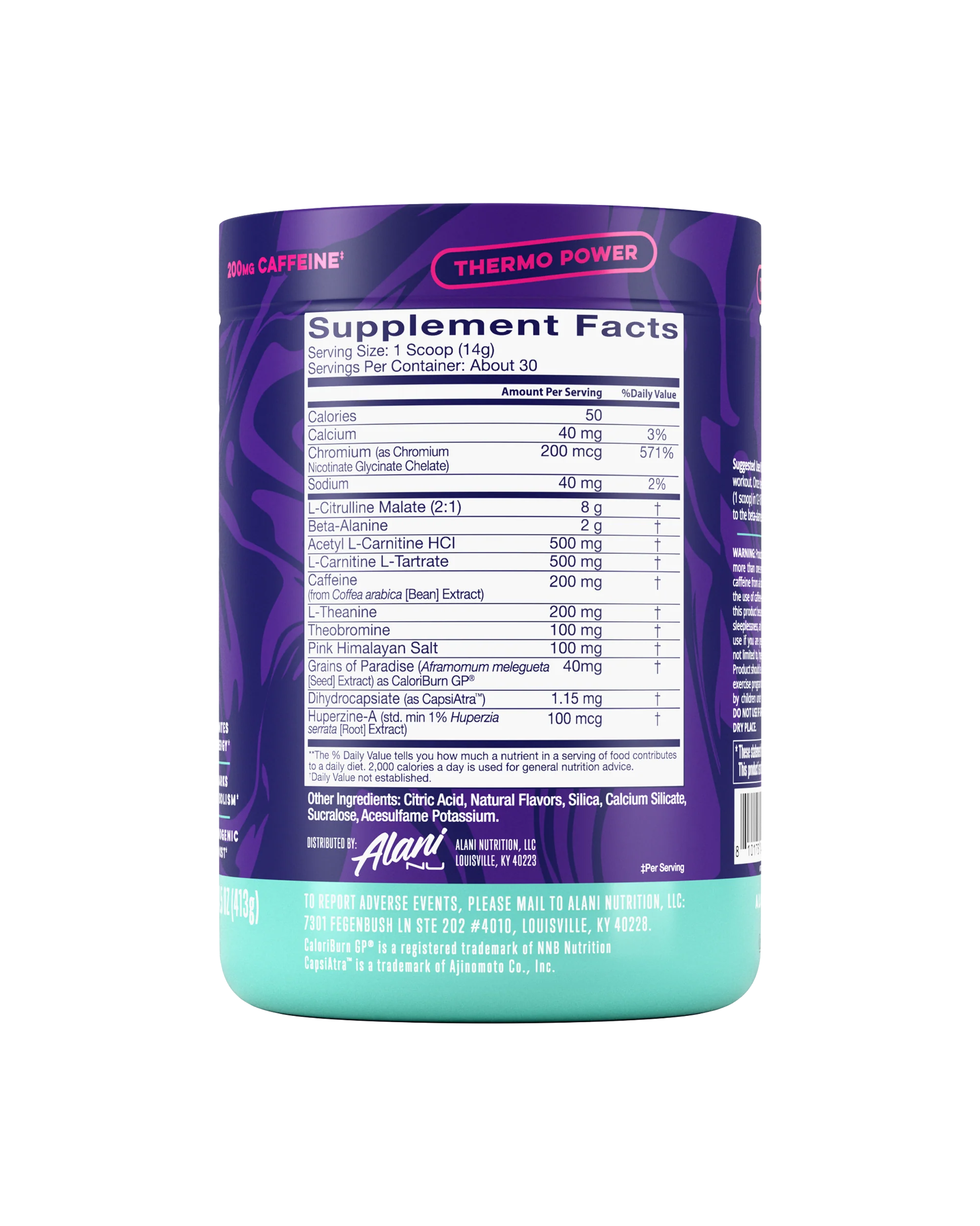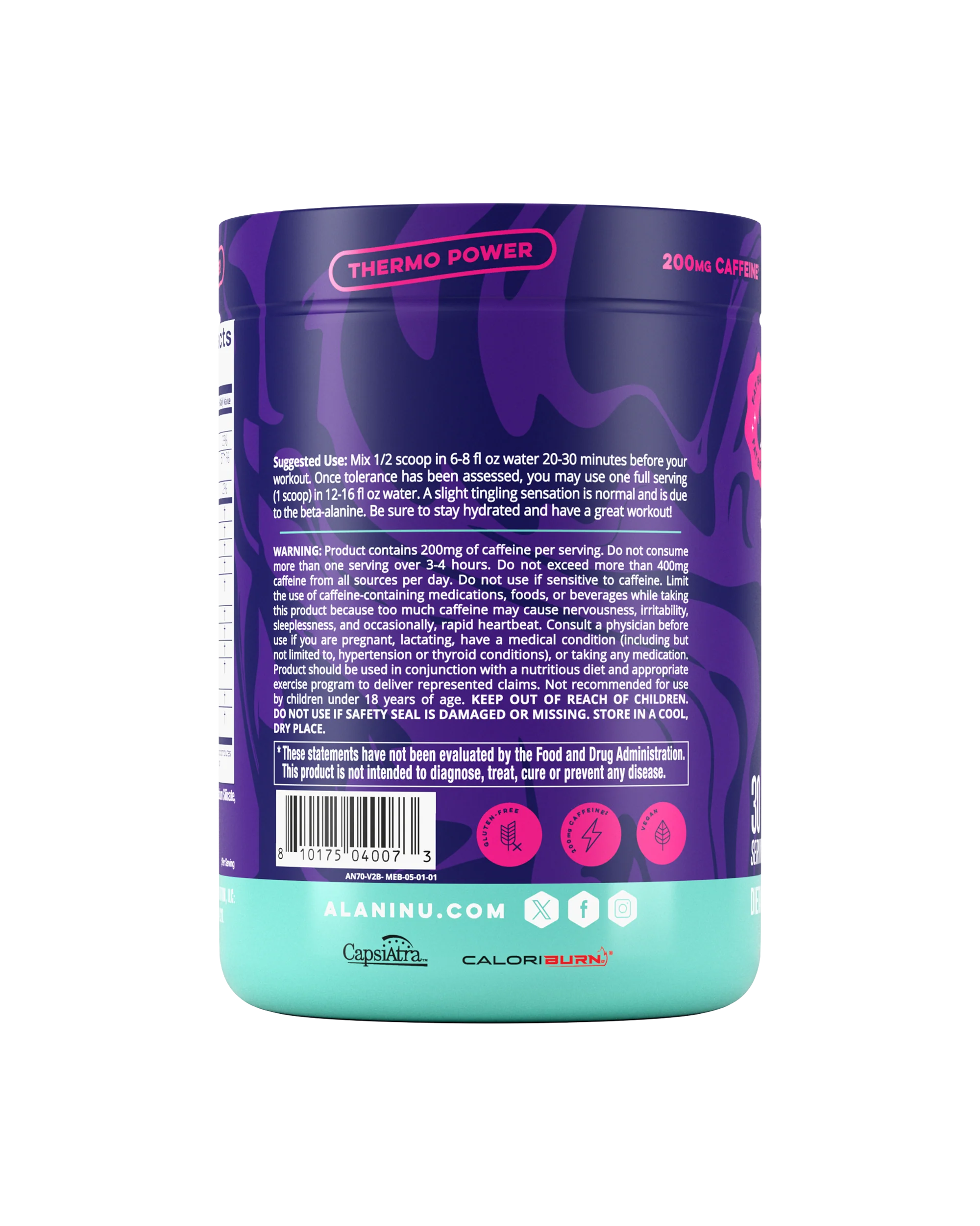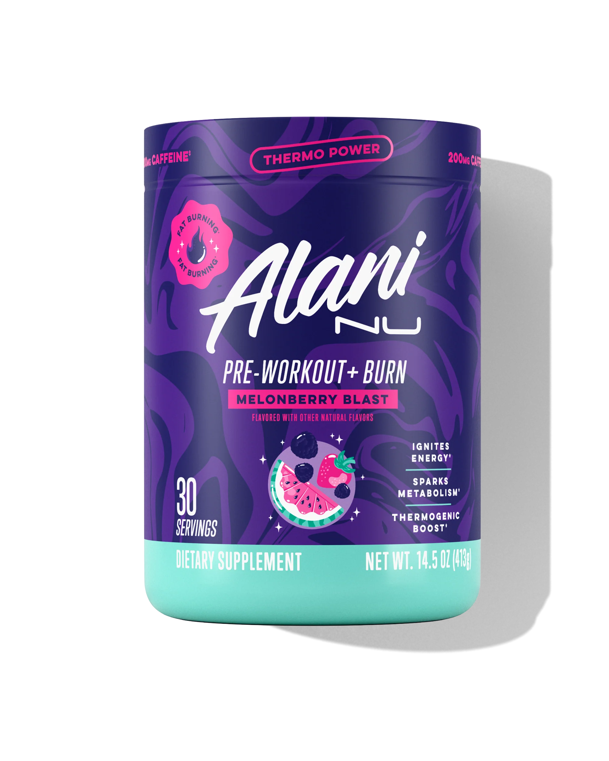 * Alani Nu Pre-Workout+ Burn helps maintain the body’s regular metabolic function. Alani Nu Pre-Workout+ Burn alone does not produce weight loss in the absence of a healthy diet and moderate exercise. These statements have not been evaluated by the Food and Drug Administration. This product is not intended to diagnose, treat, cure or prevent any disease.