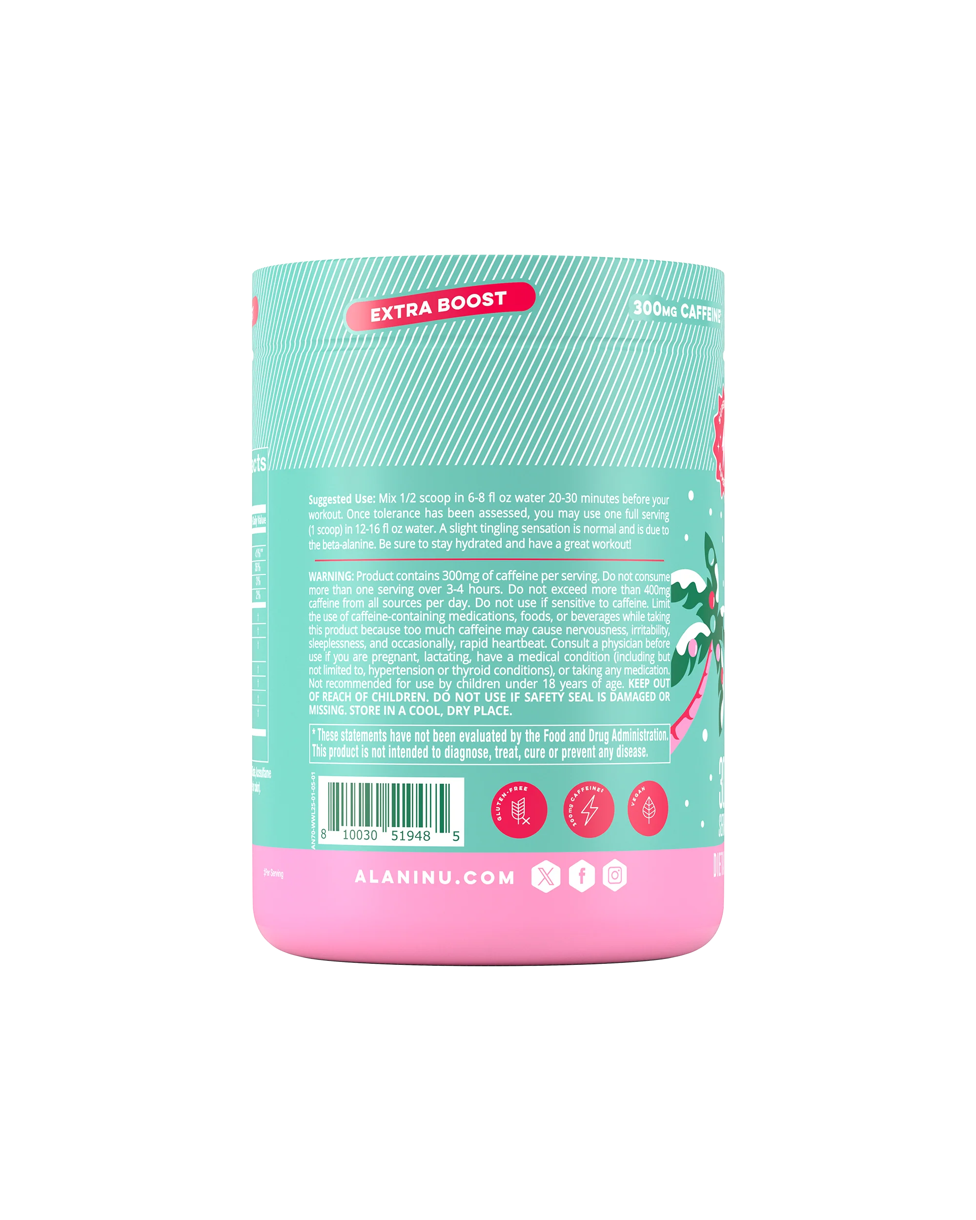 | Ingredients: Natural Flavors, Sucralose, Silica, Calcium Silicate, Acesulfame Potassium, Fruit and Vegetable Juice (for color), Beta-Carotene (for color). CONTAINS: 300mg of caffeine per serving. Not recommended for children, People Sensitive to Caffeine, Pregnant Women Who are Nursing. Daily caffeine consumption should be limited to approximately 400mg per day from all sources.* * These statements have not been evaluated by the Food and Drug Administration. This product is not intended to diagnose, treat, cure or prevent any disease. | ||